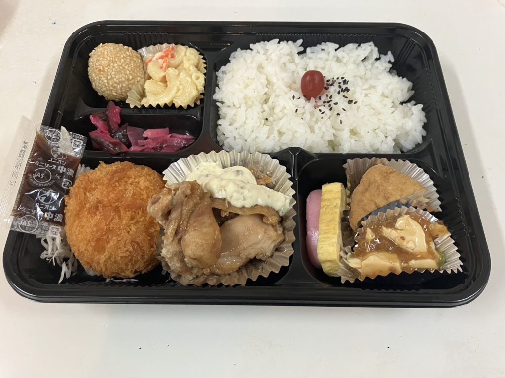 幕の内風に胡麻団子を入れた女性向のお弁当